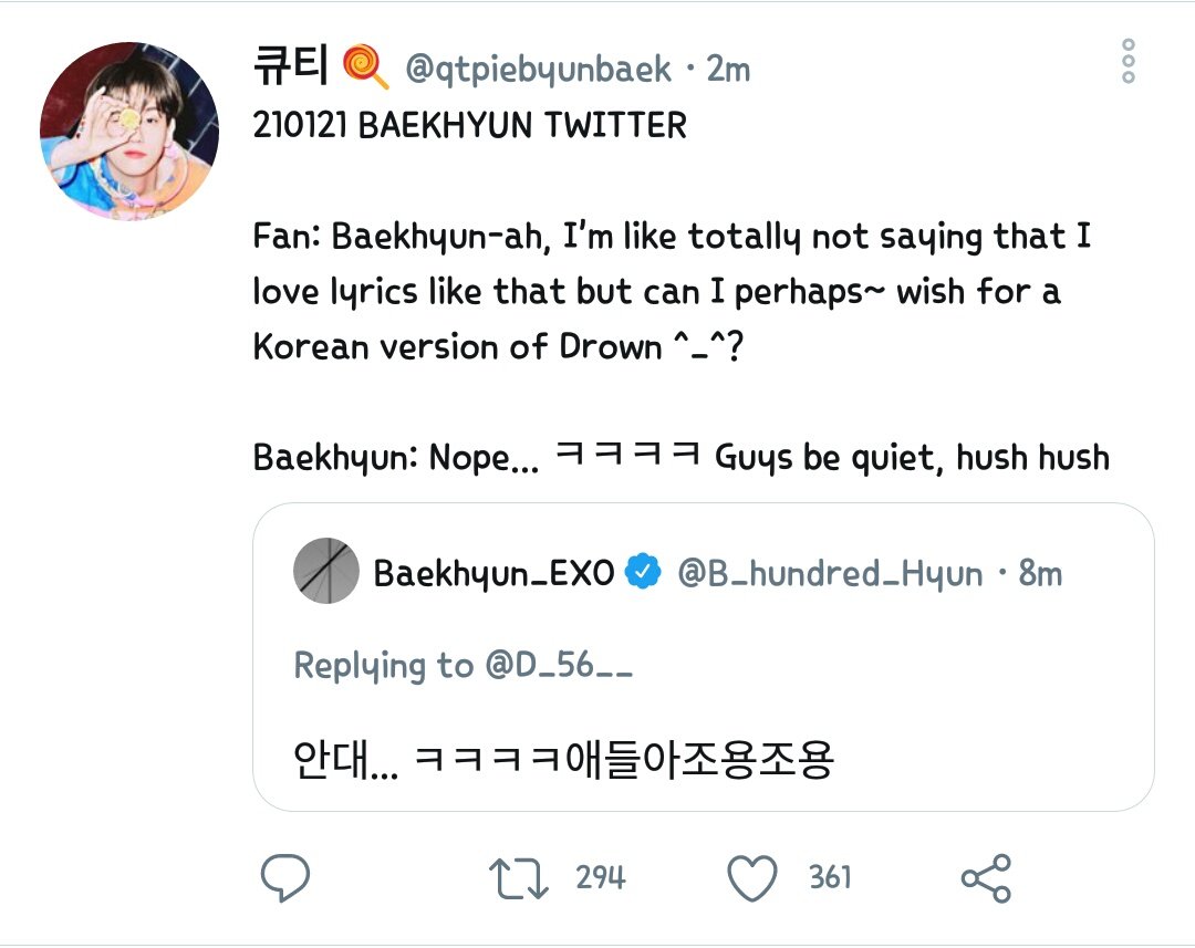 Nivi On Twitter So Baekhyun Didn T Actually Tell Kids To Wear An Eye Patch Because Of Drown S Lyrics Google Translated His Message That Way This Was The Actual Translation Https T Co Tu4cnaoztm