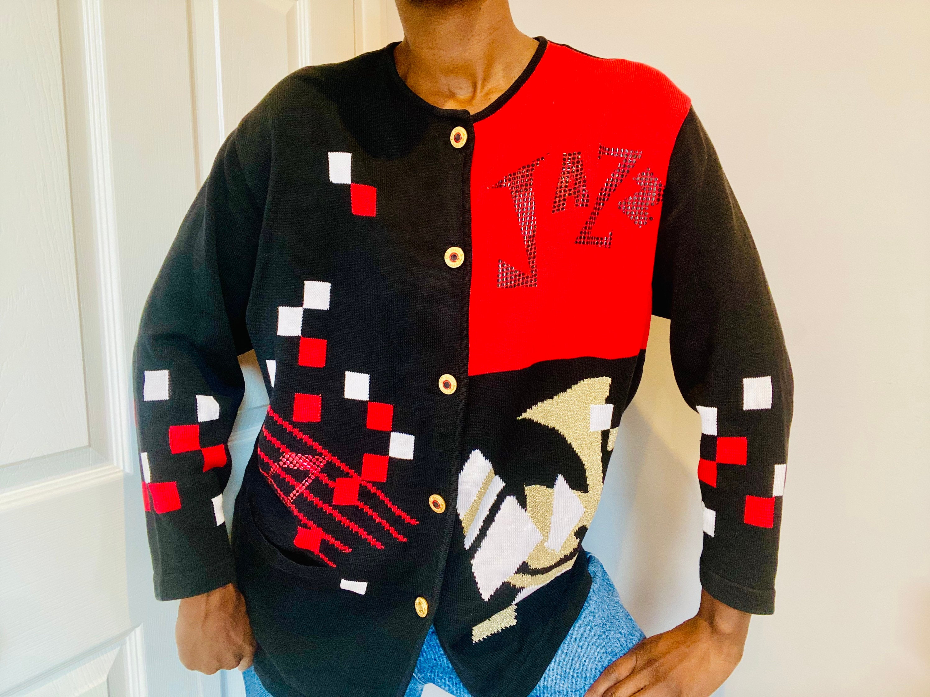 80s Patrizia S By Mondi Red Black Gold Cardigan Uk16 Eu44 Etsy Uk